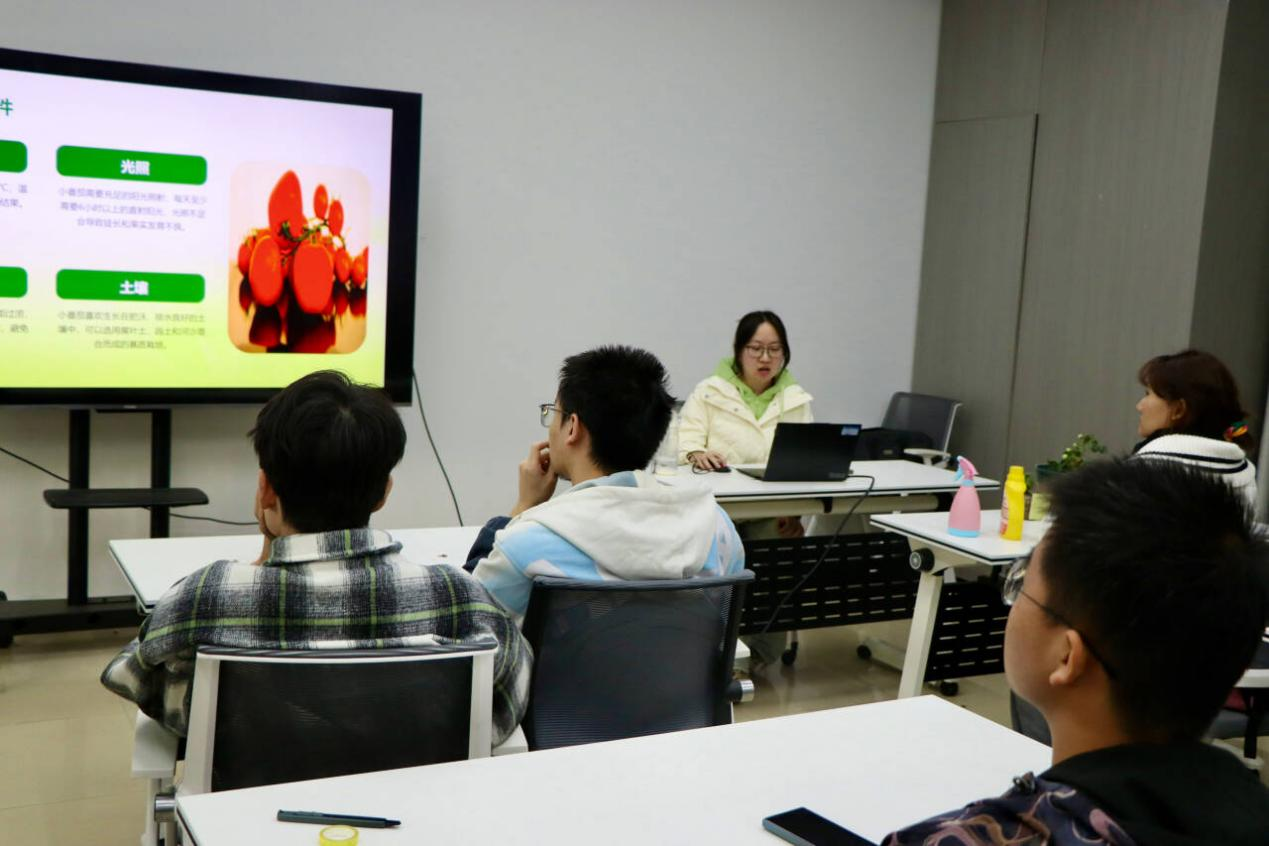 芯宠辅导站队长郝卫洋同学在现场开展了园艺知识讲座,讲述了小番茄芯宠在前期培育过程中的小故事,并向大家传授了种植小番茄的技巧,并针对同学们提出的种植问题给予了耐心的解答。同学们感受到了培育绿植的辛苦,也感受到沉甸甸的责任。