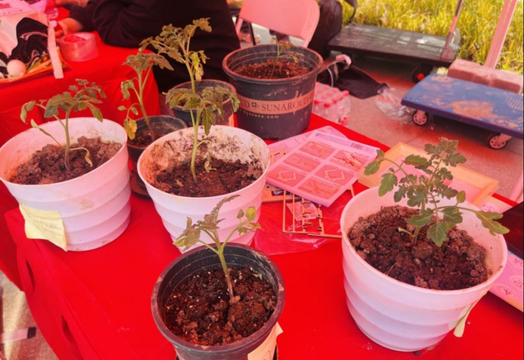 此次游园会以“芯宠辅导站”为载体,在展会上公司围绕“芯宠”——番茄,开展了系列创意趣味活动,并通过现场演示、互动体验等多种形式展示了公司创新实验室以及科创成果,为同学们带来了一场充满欢乐与温暖的心灵之旅。在活动现场,同学们展示的公司 “芯宠” 番茄植株成了众人瞩目的焦点 —— 公司独具特色的 “芯宠” 番茄植株精彩亮相。同学们将一株株亲自培育的番茄植株摆放整齐,瞬间吸引了过往师生纷纷驻足观看。茁壮的番茄不仅是公司春日里一道亮丽的风景线,而且象征着微电子公司在科学研究和技术创新上的活力和吸引力,展示着微电子相关专业莘莘学子脚踏实地、追求卓越的精神风貌。