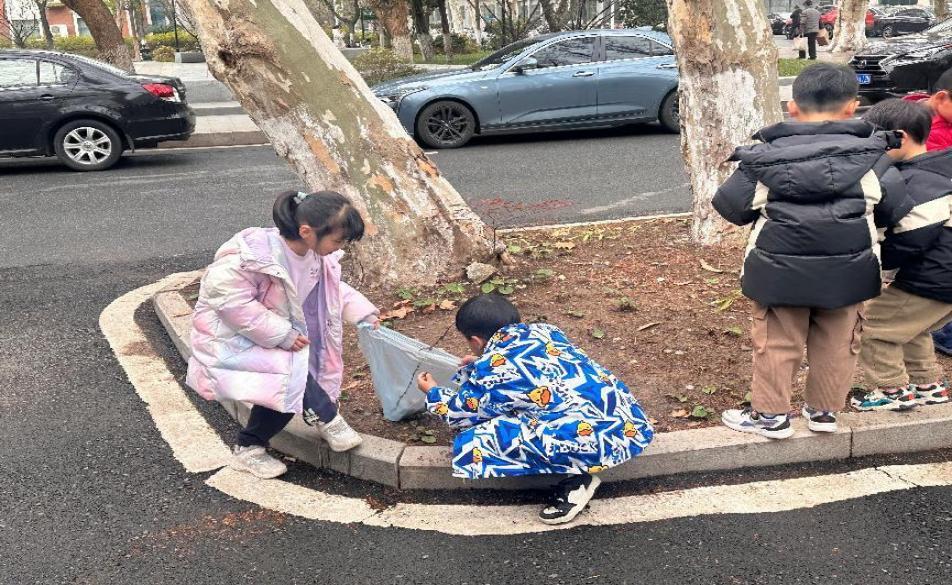 移步校园林荫道,在老师和志愿者的带领下,大小志愿者携手开展“绿意守护行动”。劳动间隙,志愿者向小朋友们讲述雷锋故事,其中一位小朋友举着刚捡到的塑料瓶认真说道,“我要像雷锋叔叔那样帮助他人!”。该活动融入了劳动教育,鼓励小朋友们从身边小事做起,养成良好的环保习惯,让雷锋精神具象化为点滴实践。