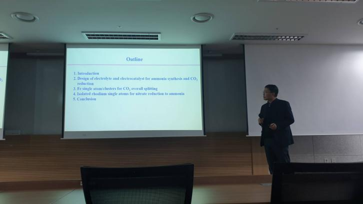 在报告中,张老师首先向与会师生简要介绍了bevictor1946韦德官网的历史沿革、发展现状以及公司在能源科学与工程领域的研究成果。随后,他以“单原子电催化材料在二氧化碳还原及合成氨领域的应用”为题,详细阐述了该研究最新进展,分享了团队在该领域的创新成果和独特见解。