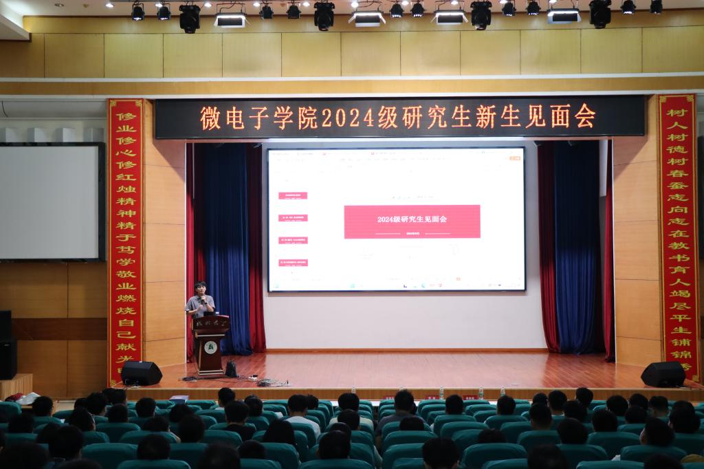 2024年9月15日上午,微电子公司2024年研究生新生见面会于集团三号报告厅顺利举行。公司经理游龙教授、副经理汪宝元教授、公司党委副书记田务民以及公司相关老师出席见面会,微电子学院2024级全体研究生参加。见面会由公司研究生辅导员韩泽群主持。