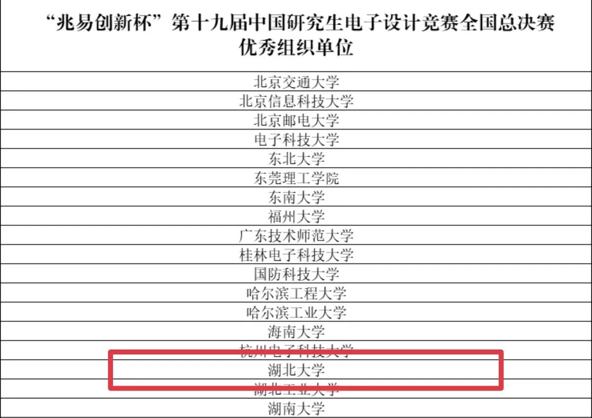 8月7日-8月10日,由教育部学位管理与研究生教育司指导,中国学位与研究生教育学会、中国科协青少年科技中心、中国电子学会联合主办的“兆易创新杯”第十九届中国研究生电子设计竞赛全国总决赛在江苏无锡圆满闭幕。本届竞赛中,公司共获得5项全国性奖项。公司研究生参赛队伍分别获全国一等奖1项,二等奖1项,三等奖1项,公司万美琳教师获评“优秀指导教师”,公司获评全国总决赛“优秀组织单位”。