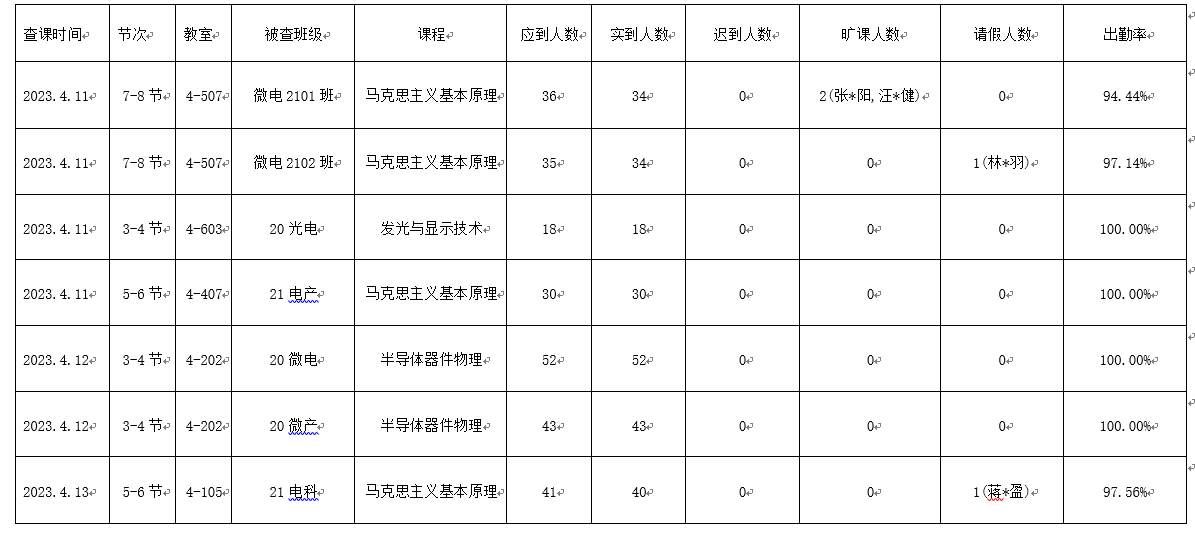 微电子公司第十周查课查寝情况通报